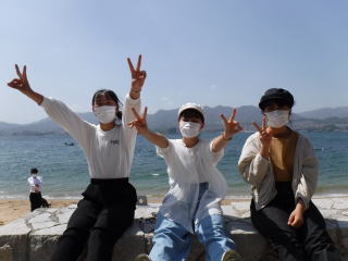 | 厳島神社の本殿に初めて入りました。今まで見たことない視点で鳥居、しかも改装中の鳥居が見られたので良い体験ができました。そこで、管弦祭について聞くこともできたので、行けて良かったです。 そのあと、宮島の商店街で宮島の明るい雰囲気と共に美味しいごはん等が買えました。 最後に行ったみやじマリンでは期間限定の「花びより」が見れました。 鹿に食べ物を狙われるアクシデントもあったけど、とても楽しかったです。 新しいクラスの人とも仲良くなれた気がします |
