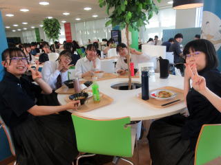 | 5年生が広島市立大学を訪問しました。 生徒たちは夏休み前に「大学」を感じることができ,有意義な時間となりました。 〇当日の流れ ・大学紹介,入試説明 ・学食で昼食 ・模擬講義(国際学部/情報科学部) ・留学生との交流 |