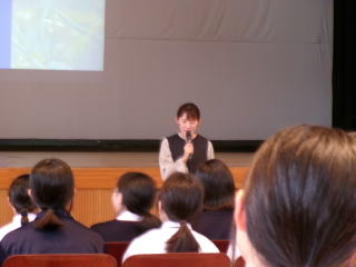 講師にフリーアナウンサー・NPO法人「IMCCD国際地雷処理地域復興支援の会」広島支部長の久保田 夏菜様をお招きし、カンボジアの文化や地雷処理に関するご講演をいただきました。