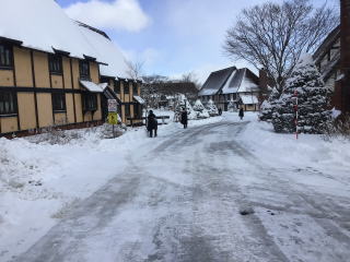 雪の降る中、生徒たちはレッスンやアクティビティを頑張っています